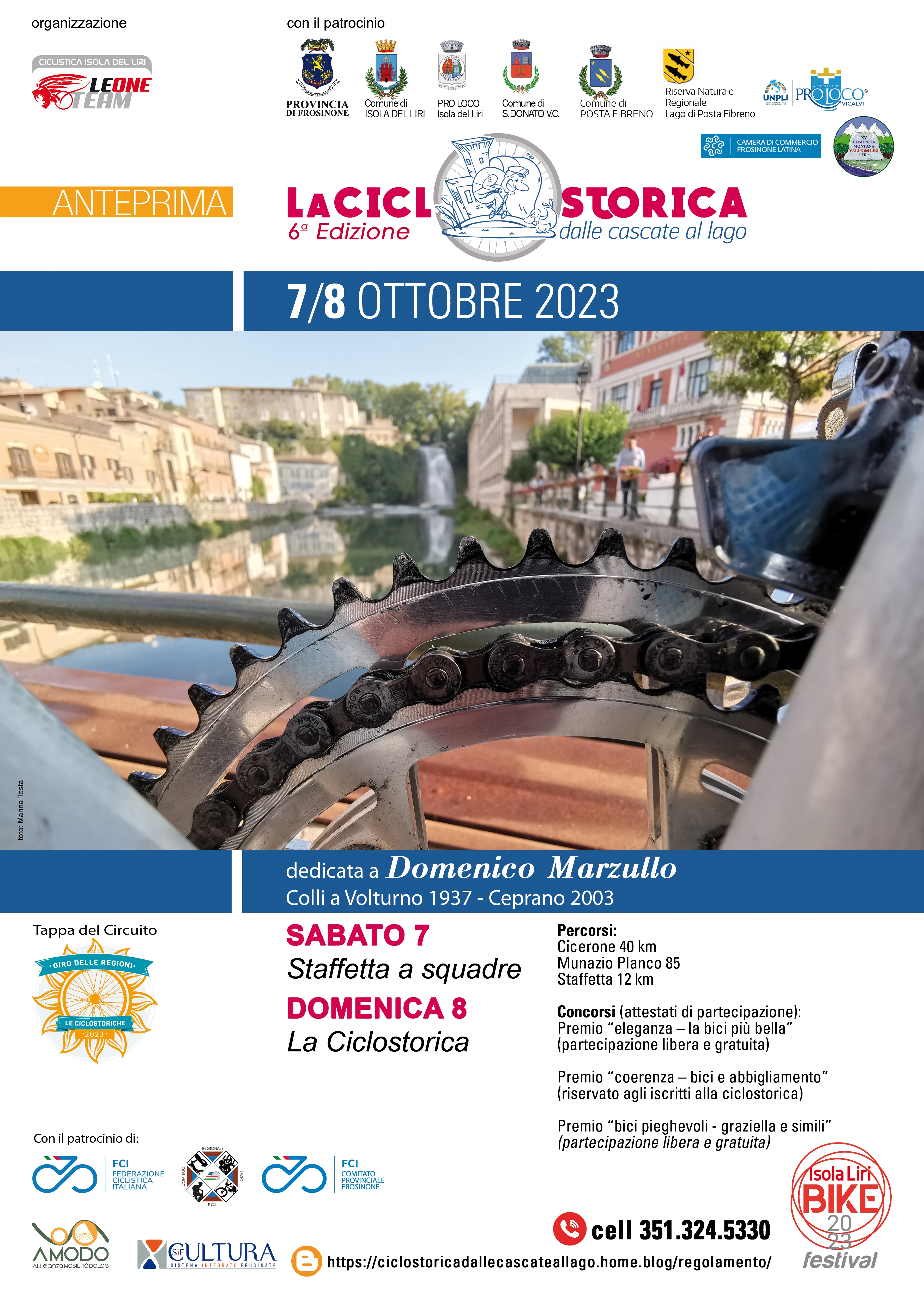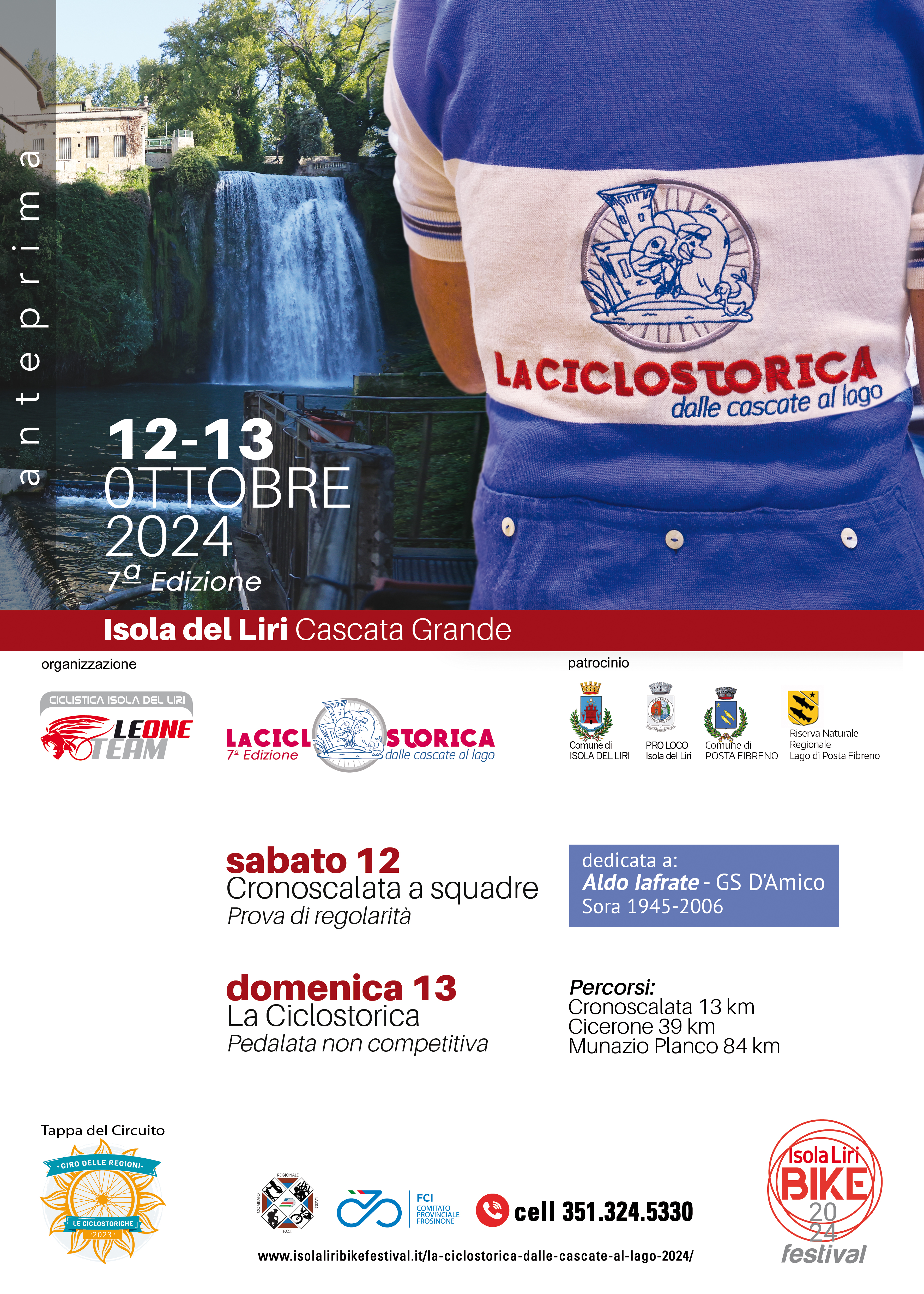 La prossima edizione della Ciclostorica dalle Cascate al Lago si terrà sabato 12 e domenica 13 ottobre 2024. Per iscriversi è necessario leggere ed accettare il nostro regolamento scaricabile in pdf al seguente link.